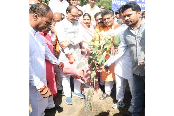 मुख्यमंत्री चौहान ने सामाजिक संगठनों के सदस्यों और विद्यार्थियों के साथ लगाए पौधे