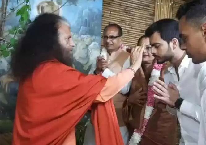 मध्य प्रदेश के मुख्यमंत्री शिवराज ने स्वामी चिदानंद से सपत्नी और बच्चों के साथ लिया आशीर्वाद