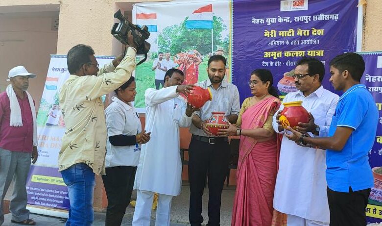 नेहरू युवा केंद्र रायपुर, युवा कार्यक्रम एवं खेल मंत्रालय, भारत सरकार द्वारा मेरी माटी मेरा देश कार्यक्रम के अंतर्गत हर घर हर गाँव से मिट्टी व चावल एकत्रित किए गए उसे विकासखंड स्तर पर सरस्वती शिशु मंदिर, देवंद्र नगर में एक कलश में एकत्रित किया गया। इस कलश को अब नेहरू युवा केंद्र के स्वयंसेवकों द्वारा दिल्ली के लिए प्रस्थान होगा जहां पर कर्तव्यपथ पर अमृत वाटिका का इसी मिट्टी के माध्यम से निर्माण किया जाएगा।