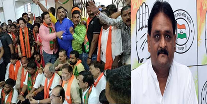 भाजपा कार्यकर्ता सिटी कोतवाली थाना पहुंचकर धरने पर बैठ गए हैं। भाजपा विधायक बृजमोहन अग्रवाल खुद भी धरने पर बैठे हुए हैं और मांग की है कि जब तक आरोपी गिरफ्तार नहीं हो जाते तब तक धरना खत्म नहीं करेंगे। अब देखने वाली बात यह होगी कि इस मामले में पुलिस और भूपेश सरकार क्या कारवाई करती है। साथ ही बृजमोहन अग्रवाल का आरोप है कि रायपुर के मेयर एजाज ढेबर के समर्थकों ने उनके ऊपर हमला किया है। यह सब कांग्रेस सरकार के इशारे पर किया गया है।