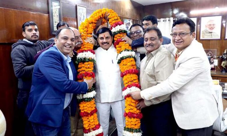 मुख्यमंत्री डॉ. यादव का विशाल माला पहनाकर किया अभिवादन