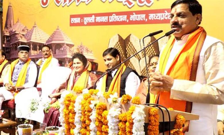 मुख्यमंत्री डॉ. यादव ने कहा है कि भगवान राम का जीवन संघर्षों से भरा रहा, उनके जीवन ने मर्यादा के विविध रूपों का पालन करने के प्रसंग प्रस्तुत किए और महर्षि वाल्मीकि ने विविध प्रसंगों को जन-जन तक पहुंचाने का कार्य किया। भगवान श्रीकृष्ण मनुष्य को मर्यादा में जीवन जीने की प्रेरणा देते हैं। भगवान श्रीराम के प्रति प्रेम, श्रद्धा, भक्ति की प्रतिमूर्ति के रूप में ही श्रीराम जन्म भूमि मंदिर में रामलला की प्राण प्रतिष्ठा हो रही है, परन्तु खेद का विषय है कि कुछ लोग इस शुभ अवसर पर प्रश्न चिन्ह लगा रहे है।