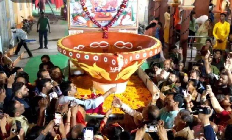 प्राण-प्रतिष्ठा महोत्सव को लेकर तुलजा भवानी माता मंदिर परिसर में 1008 किलो वजनी प्रदेश का सबसे बड़ा दीपक प्रज्वलित किया