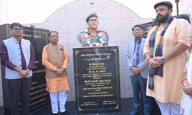 मुख्यमंत्री ने किया शहीद कर्नल विप्लव त्रिपाठी की प्रतिमा का अनावरण