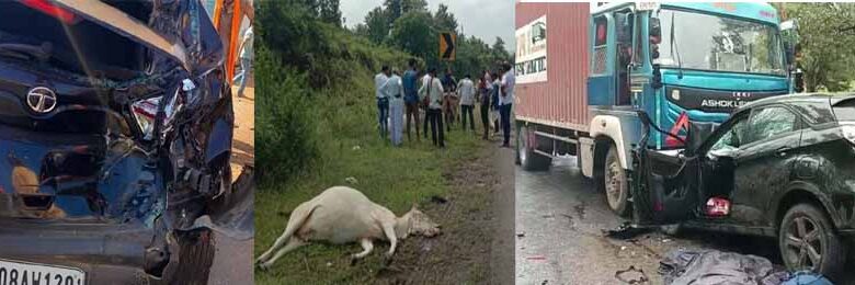 कबीरधाम : तेज रफ्तार ट्रक ने पहले कार को मारी टक्कर, फिर आठ गाय को रौंदा, दो मवेशियों की मौत