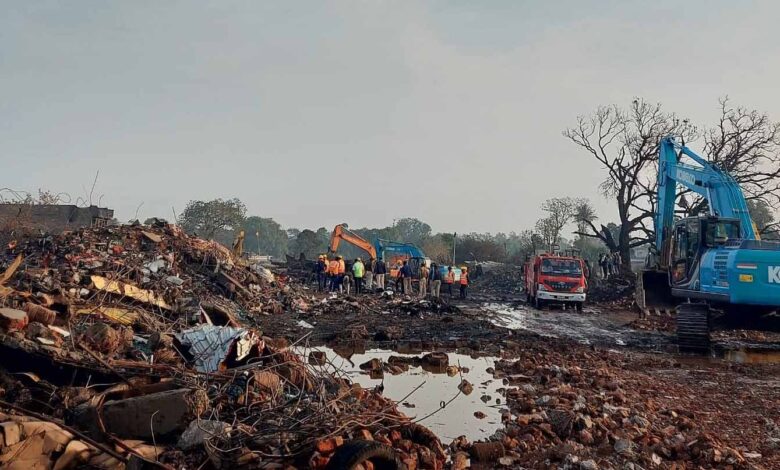 वाराणसी स्थित हेडक्वार्टर से एनडीआरएफ का 35 सदस्यीय टीम बुधवार सुबह हरदा पहुंची। फैक्ट्री में जहां तलघर में बारूद और कर्मचारी मौजूद थे, वहां मलबा हटाने का काम किया जा रहा है। साइट पर बचाव कर्मियों के साथ पोकलेन मशीनों के अलावा एंबुलेंस भी मौजूद हैं, ताकि अगर कोई मलबे में दबा व्यक्ति मिले, तो उसे तुरंत अस्पताल भिजवाया जा सके। पटाखा फैक्ट्री के आसपास तबाही का मंजर भयावह है। खेत में जहां तक नजर जा रही है। सिर्फ मलबा, टीन की टूटी हुई चादरें, लोहे के एंगल और जला हुआ सामान नजर आ रहा है। फैक्ट्री के पास खेत में लगे आम के दो विशाल पेड़ पूरी तरह जलकर सूख चुके हैं। फैक्ट्री की साइट पर पूरी तरह जली हुई एक कार भी नजर आई। इसके साथ-साथ दो बाइक भी मलबे में मिली हैं, जिनका सिर्फ ढांचा बचा है।