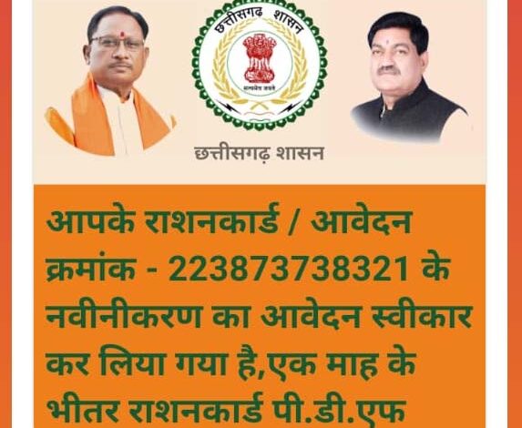 43 लाख 83 हजार राशन कार्डधारियों ने किया नवीनीकरण के लिए ऑनलाइन आवेदन, पहले स्थान पर बालोद जिला