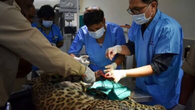 वन विहार राष्ट्रीय उद्यान में रेस्क्यू कर लाई गई घायल मादा तेंदुआ