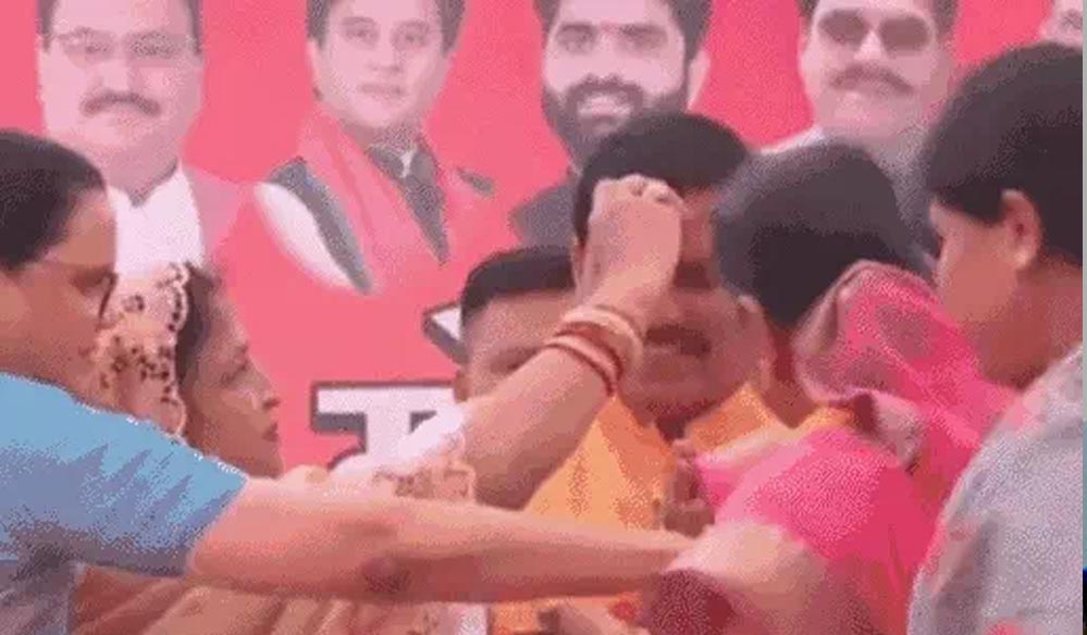 बिलहरा में आयोजित नारी शक्ति वंदन कार्यक्रम में पहुंचे डा. मोहन यादव ने भाईदोज पर बहनों से अपनी कलाई पर धागा बंधवाया