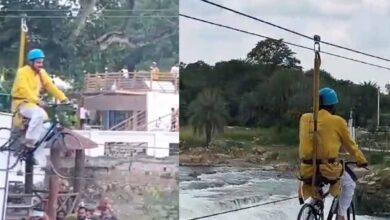 जनसंपर्क मंत्री राजेंद्र शुक्ल ने स्काई साइकिलिंग कर पार की नदी
